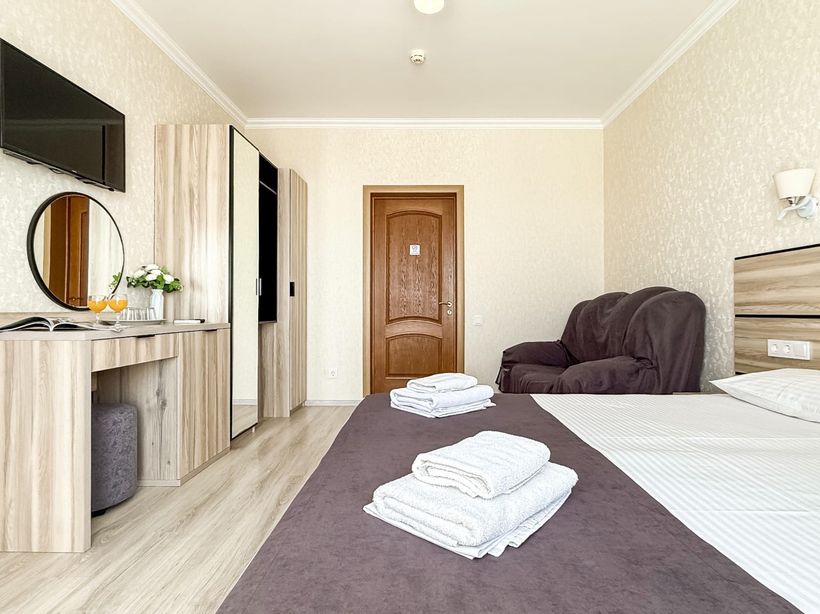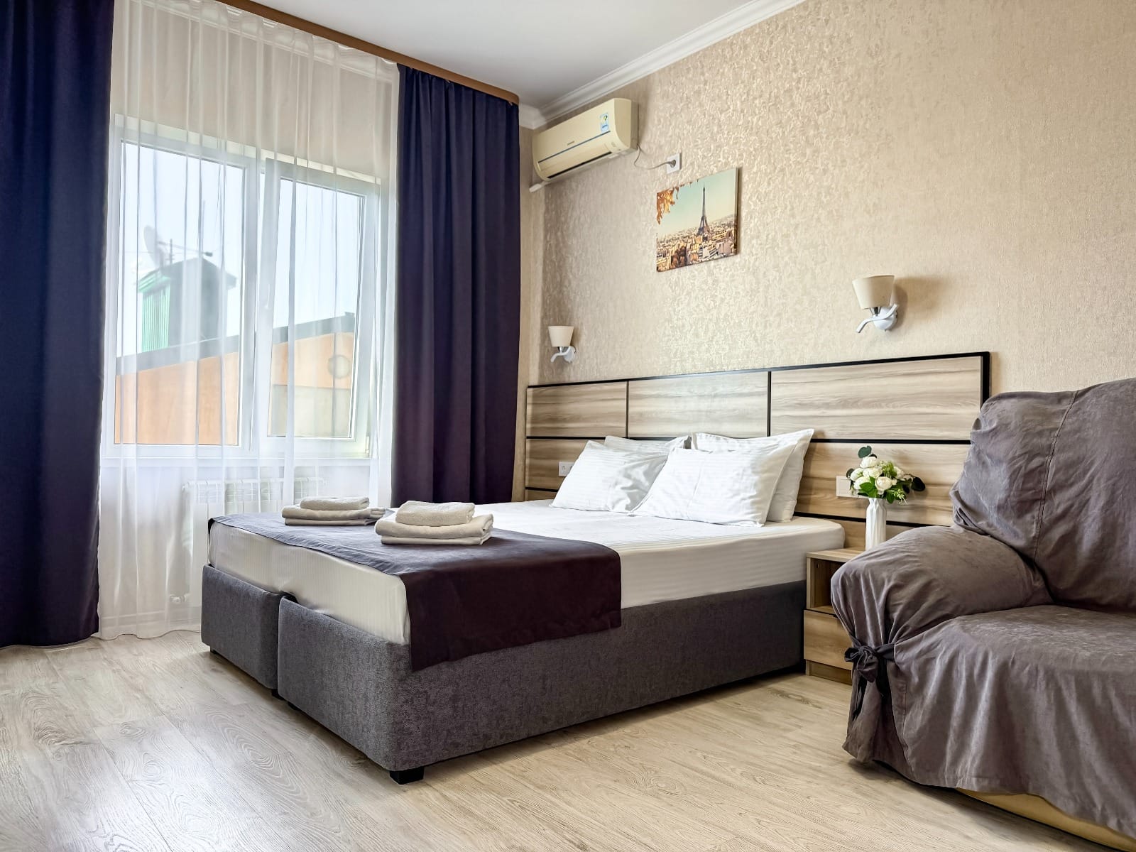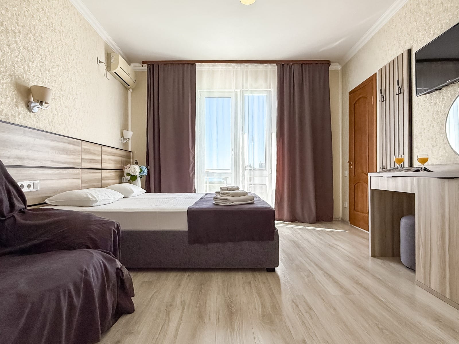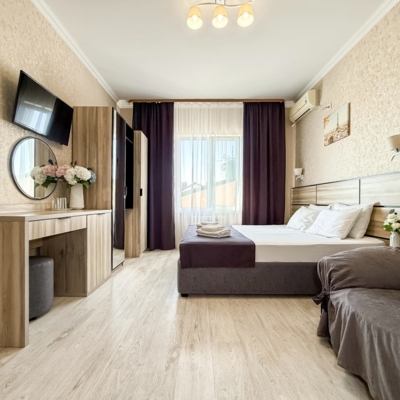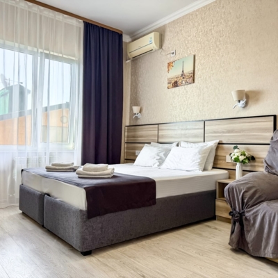 - Современные оборудованные номера: кондиционер, холодильник, телевизор, душ, с/у;