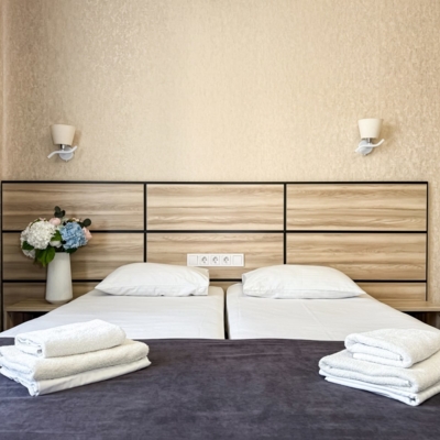 - При бронировании трёхместного номера, предоставляется размещение категории TWIN+ EXB (стандартный номер с двумя раздельными кроватями + дополнительное спальное место( возможно еврораскладушка))